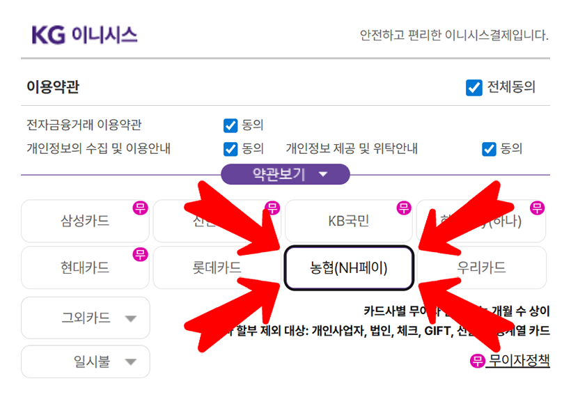 NH Pay 결제 또는 다른 결제 수단을 선택하여 결제를 진행하세요.