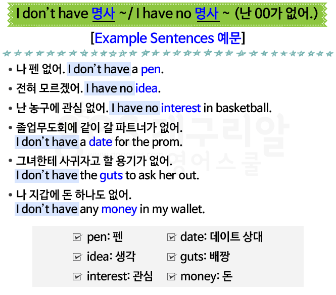 I don't have any pets. 애완동물을 기르고 있지 않아