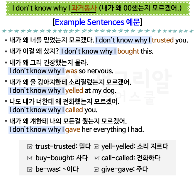 I don't know why I lended money to you. 난 왜 너에게 돈을 빌려주었는지 몰라.