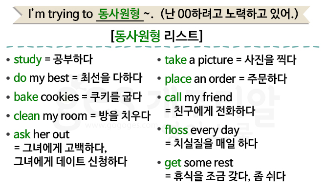 대현님 :) 『I'm trying to 동사원형~.』패턴을 사용하여 멋진 문장 완성! Excellent★ 저희와 꾸준히 어휘력을 쑥쑥~ 키우세요! 이와 비슷한 의미로, 나는 최선을 다하고 있어.는 I'm trying my best. 가 있답니다. 건강한 하루 보내세요 :D